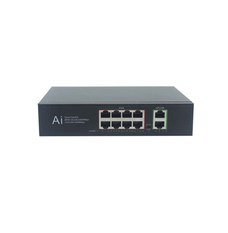 ◆ 8個(gè)10/100/1000Base-TPoE電口,2個(gè)10/100/1000Base-T上聯(lián)電口;
